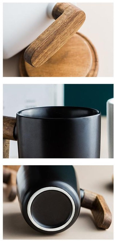 Matériau : Mug en Céramique et couvercle + poignée en bois d’acacia