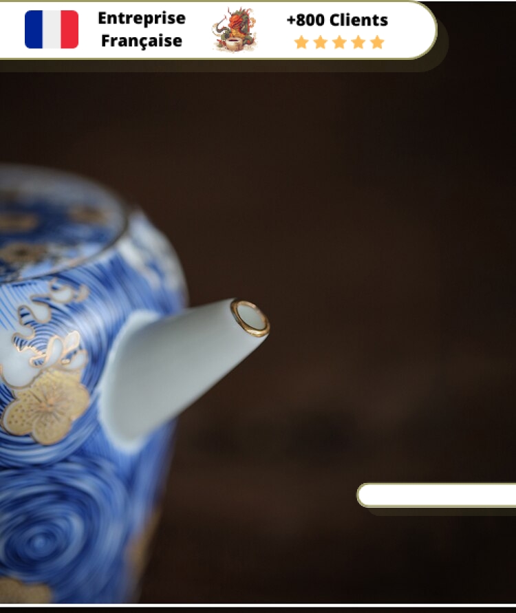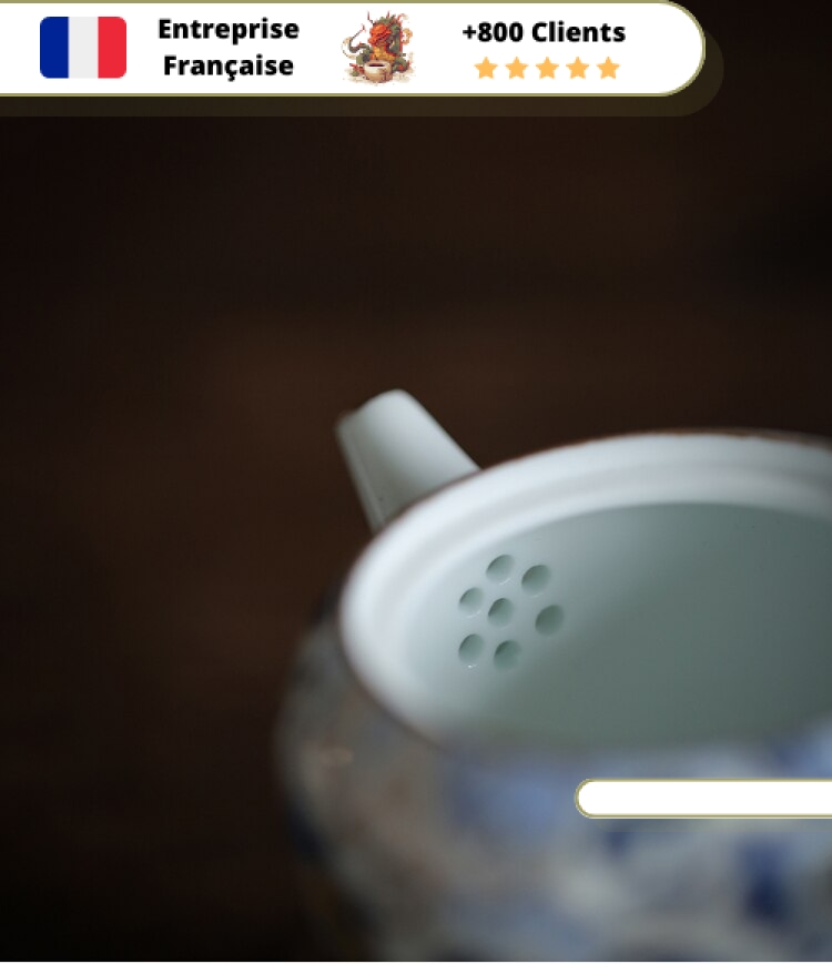 Filtre : Porcelaine 7 trous, intégré à la théière devant le bec verseur